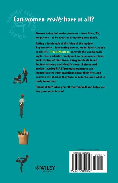 Can women really have it all? Women today feel under pressure - from films, TV, magazines - to be great at everything they touch. Taking a fresh look at this idea of the modern Superwoman - fascinating career, model family, hectic social life - Paula Nicolson unravels the unattainable myth from workaday reality and so helps women take back control of their lives. Using self-tests to aid decision-making and identify areas of stress and anxiety, Having It All? prompts women to ask themselves the right questions about their lives and examine the choices they face in order to learn what is really important. Having It All? takes you off the treadmill and helps you find your ways to win!