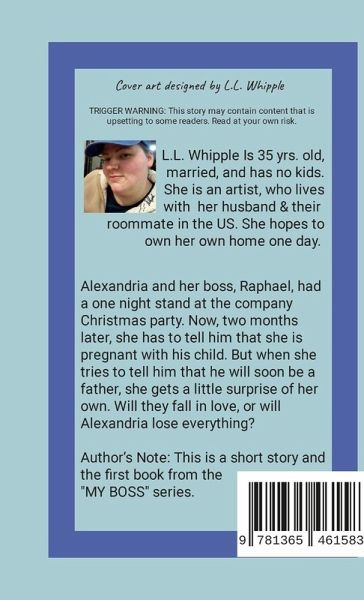 TRIGGER WARNING: This story may contain content that is upsetting to some readers. Read at your own risk. (1ST BOOK IN THE "My Boss" SERIES) Alexandria and her boss, Raphael, had a one night stand at the company Christmas party. Now, two months later, she has to tell him that she is pregnant with his child. But when she tries to tell him that he will soon be a father, she gets a little surprise of her own. Will they fall in love, or will Alexandria lose everything?