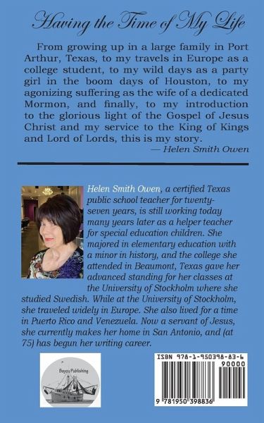From growing up in a large family in Port Arthur, Texas, to my travels in Europe as a college student, to my wild days as a party girl in the boom days of Houston, to my agonizing suffering as the wife of a dedicated Mormon, and finally, to my introduction to the glorious light of the Gospel of Jesus Christ and my service to the King of Kings and Lord of Lords, this is my story. - Helen Smith Owen