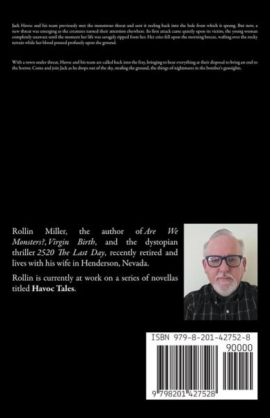 Jack Havoc and his team previously met the monstrous threat and sent it reeling back into the hole from which it sprang. But now, a new threat was emerging as the creatures turned their attention elsewhere. Its first attack came quietly upon its victim, the young woman completely unaware until the moment her life was savagely ripped from her. Her cries fell upon the morning breeze, wafting over the rocky terrain while her blood poured profusely upon the ground. With a town under threat, Havoc and his team are called back into the fray, bringing to bear everything at their disposal to bring an end to the horror. Come and join Jack as he drops out of the sky, strafing the ground, the things of nightmares in the bomber's gunsights.