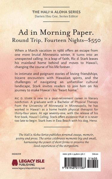 When a vacation offers an escape from yet another brutal Minnesota winter, it turns into an unexpected calling. In a leap of faith, Ric d. Stark leaves his mainland home behind and moves to Hawai'i, changing the course of his life forever.