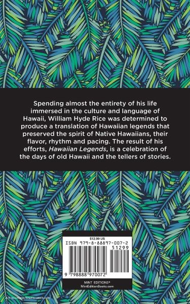 "Mr. Rice's theory as to the origin of these legends is based on the fact that in the old days, before the discovery of the islands by Captain Cook, there were bards and storytellers, either itinerant or attached to the courts of the chiefs...these bards or storytellers sometimes used historical incidents or natural phenomena for the foundation of their stories, which were handed down from generation to generation." Hawaiian Legends (1923) is a collection of Hawaiian myth and folklore complied and translated by William Hyde Rice. Having been born and spent his entire life immersed in the culture of Hawaii, Rice spent many years collecting and translating the stories he had heard in his childhood, gathered through books and sought out from elders. Determined to capture the authentic spirit of the Hawaiians, his cumulative volume is a celebration of the days of old Hawaii and the stories that have lived through the ages. This edition of William Hyde Rice's Hawaiian Legends is a classic of Hawaiian literature reimagined for modern readers. Since our inception in 2020, Mint Editions has kept sustainability and innovation at the forefront of our mission. Each and every Mint Edition title gets a fresh, professionally typeset manuscript and a dazzling new cover, all while maintaining the integrity of the original book. With thousands of titles in our collection, we aim to spotlight diverse public domain works to help them find modern audiences. Mint Editions celebrates a breadth of literary works, curated from both canonical and overlooked classics from writers around the globe.
