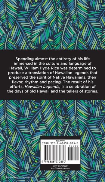 "Mr. Rice's theory as to the origin of these legends is based on the fact that in the old days, before the discovery of the islands by Captain Cook, there were bards and storytellers, either itinerant or attached to the courts of the chiefs...these bards or storytellers sometimes used historical incidents or natural phenomena for the foundation of their stories, which were handed down from generation to generation." Hawaiian Legends (1923) is a collection of Hawaiian myth and folklore complied and translated by William Hyde Rice. Having been born and spent his entire life immersed in the culture of Hawaii, Rice spent many years collecting and translating the stories he had heard in his childhood, gathered through books and sought out from elders. Determined to capture the authentic spirit of the Hawaiians, his cumulative volume is a celebration of the days of old Hawaii and the stories that have lived through the ages. This edition of William Hyde Rice's Hawaiian Legends is a classic of Hawaiian literature reimagined for modern readers. Since our inception in 2020, Mint Editions has kept sustainability and innovation at the forefront of our mission. Each and every Mint Edition title gets a fresh, professionally typeset manuscript and a dazzling new cover, all while maintaining the integrity of the original book. With thousands of titles in our collection, we aim to spotlight diverse public domain works to help them find modern audiences. Mint Editions celebrates a breadth of literary works, curated from both canonical and overlooked classics from writers around the globe.