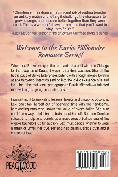 When Lexi Burke escaped the remnants of a cold winter in Chicago for the beaches of Kauai, it wasn't a random vacation. She left the hectic pace of Burke Enterprises behind with enough money to retire at age thirty-two, intent on settling into the idyllic existence of island life. Until she met local photographer Derek Mitchell-a talented man with a grudge against rich tourists. From art night to snorkeling lessons, hiking, and chopping coconuts, Lexi can't talk herself out of spending time with the handsome, hardworking man who knows the value of every dollar. She also can't find a way to tell him the truth about herself. But then Derek is selected to help in a benefit at a masquerade ball as one of the eligible bachelors up for auction. Lexi must decide whether to wear a mask or unveil her true self and risk losing Derek's trust and a chance at love. This novel is Book #1 in the Burke Billionaire Romance Series and includes a bonus sneak peek of Book #2! Books can be read in any order. Look for the newest novella, The Refugee's Billionaire, coming soon! Thank you for reading! Books in the Burke Billionaire Romance Series Hawaiian Masquerade The Billionaire's Stray Heart The Refugee's Billionaire