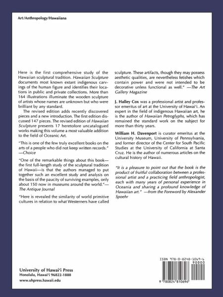The first comprehensive study of Hawaiian sculptural tradition, Hawaiian Sculpture documents most known extant indigenous carvings of the human figure and identifies their location in public and private collections. More than 164 illustrations illuminate the wooden sculpture of artists whose names are unknown but who were brilliant by any standard. The revised (1988) edition adds recently discovered pieces and a new introduction. The first edition discussed 147 pieces; the revised edition presents 17 previously uncatalogued works, making the volume a valuable addition to the field of Oceanic art.