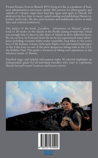 The author of the book Lavaflow-Adventures on Hawaii, spent a total of 28 weeks on the islands in the Pacific during several trips which was anough time to discover the chain of islands in all its different facets. By car, on foot, by boat and from the air he has experienced many adventures including romantic baths under waterfalls, long hikes to the active lava of the Kilauea volcano, helicopter flights over untouched landscapes or the 5-day tour on one of the most dangerous hiking trails in the USA, the Kalalau Trail. This guide is focused on hiking and experiences in the fabulous nature of Hawaii. Detailed maps and helpful information make 50 selected highlights an indispensable guide for all individual travellers who want to experience Hawaii beyond tourist locations and luxury resorts. Printed Version is in black/white.ebook is in full color.