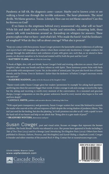 Pandemic at full tilt, the diagnosis came--cancer. Maybe you've known crisis or are walking a loved one through the terrible unknown. The heart plummets. The mind shrills. We blame genetics. Toxins. Lifestyle. How can we not blame ourselves? Can this be thrown on God? If we listen to the emptiness behind every unanswered why, what will we hear? While life and death circle overhead, heckle and intimidate, exhausting faith, these poems talk with touchstones around us. Eavesdrop on whispers for answers. These poems explore what we have--and what's left. Who made the hawk? And the lionhearted songbird? What do they tell us about courage? What else is present?