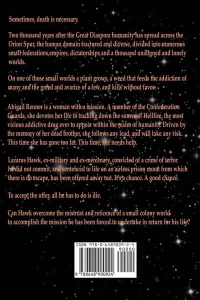 Sometimes, death is necessary. Two thousand years after the Great Diaspora humanity has spread across the Orion Spur, the human domain fractured and diverse, divided into numerous small federations, empires, dictatorships and a thousand unaligned and lonely planets. On one of those small worlds a plant grows, a weed that feeds the addiction of many and the greed and avarice of a few, and kills without favor. Abigail Renner is a woman with a mission. A member of the Confederation Guarda, she devotes her life to tracking down the source of Hellfire, the most vicious addictive drug ever to appear within the realm of humanity. Driven by the memory of her dead brother, she follows any lead, and will take any risk. This time she has gone too far. This time, she needs help. Lazarus Hawk, ex-soldier and ex-mercenary, convicted of a crime of terror he did not commit, and sentenced to life on an airless prison moon from which there is no escape, has been offered a way out. It's a chance. A good chance. To accept the offer, all he has to do is die. Can Hawk overcome the mistrust and reticence of a small colony world to accomplish the mission he has been forced to undertake in return for his life? If you like great, classic science fiction, you will love this new work by multi-award-winning author Mike Waller, an action packed dive into the world of a galactic mercenary driven by the ghosts from his past. Grab a copy now and join Lazarus Hawk in his search for justice for a remote colony world.