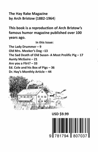 Now after over one hundred years, reprints of Arch Bristow's Hay Rake Magazine are available. Self-Published by Arch Bristow from his home in Garland, PA, beginning in 1920, it started modestly at 1,000 copies but quickly grew to a subscription rate of 20,000. Arch was a cartoonist by trade with the syndicated cartoon strip "Zimmie." In the early 1900s. His drawing skill paid off well for Arch later as he drew many of the illustrations and ads in the magazine and the covers. It was classic Americana from our area. His writing was humorous and likely based on the local folks in the Spring Creek, Garland, and Youngsville areas. These cleaned-up reprints not only read better than those old brown-stained 100-year-old originals, but you can turn the pages, and they do not fall apart. Start your collection now, as I will be reproducing as many issues of the Hay Rake as I can find.
