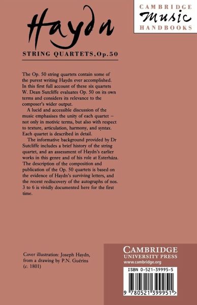 The Op. 50 string quartets contain some of the purest writing Haydn ever accomplished. In this first full account of the six quartets, Dean Sutcliffe evaluates the Op. 50 in relation to Haydn's more frequently performed quartets and considers their relevance to Haydn's wider output. Each quartet is discussed in detail. The background to these works includes a brief history of the string quartet and an assessment of Haydn's earlier works in this genre and of his role at Esterhaza. The description of the composition and publication of the Op. 50 quartets is based on the evidence of Haydn's surviving letters and the recently discovered autograph copies of nos. 3 to 6--a discovery that is vividly documented here for the first time.