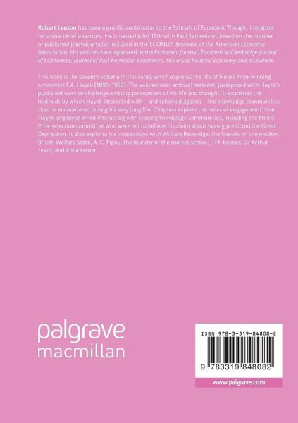 This book is the seventh volume in this serieswhich explores the life of Nobel Price-winning economist F.A. Hayek (1899-1992). The volume uses archival material, juxtaposed with Hayek's published work to challenge the existing perceptions of his life and thought. It examines the methods by which Hayek interacted with - and schemed against - the knowledge communities that he encountered during his very long life. Chapters explore the 'rules of engagement' that Hayek employed when interacting with fifth leading knowledge communities, including the Nobel Prize selection committee who were led to believe his claim about having predicted the Great Depression. It also explores his interactions with William Beveridge, the founder of the modern British Welfare State, A. C. Pigou, the founder of the market school, J. M. Keynes, Sir Arthur Lewis, and Abba Lerner.