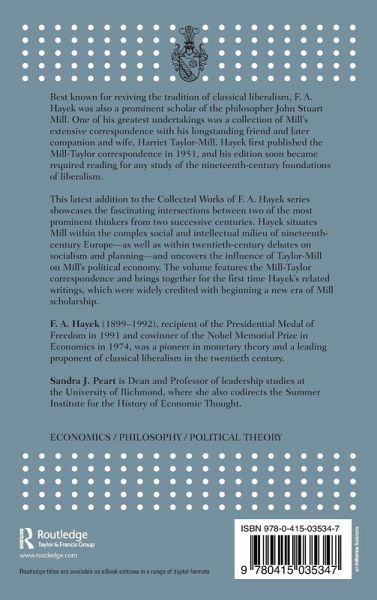 Best known for reviving the tradition of classical liberalism, F. A. Hayek was also a prominent scholar of the philosopher John Stuart Mill. One of his greatest undertakings was a collection of Mill's extensive correspondence with his longstanding friend and later companion and wife, Harriet Taylor-Mill. Hayek first published the Mill-Taylor correspondence in 1951, and his edition soon became required reading for any study of the nineteenth-century foundations of liberalism. This latest addition to the Collected Works of F. A. Hayek series showcases the fascinating intersections between two of the most prominent thinkers from two successive centuries. Hayek situates Mill within the complex social and intellectual milieu of nineteenth-century Europe-as well as within twentieth-century debates on socialism and planning-and uncovers the influence of Taylor-Mill on Mill's political economy. The volume features the Mill-Taylor correspondence and brings together for the first time Hayek's related writings, which were widely credited with beginning a new era of Mill scholarship.