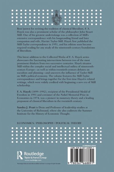 Best known for reviving the tradition of classical liberalism, F. A. Hayek was also a prominent scholar of the philosopher John Stuart Mill. One of his greatest undertakings was a collection of Mill's extensive correspondence with his longstanding friend and later companion and wife, Harriet Taylor-Mill. Hayek first published the Mill-Taylor correspondence in 1951, and his edition soon became required reading for any study of the nineteenth-century foundations of liberalism. This latest addition to the Collected Works of F. A. Hayek series showcases the fascinating intersections between two of the most prominent thinkers from two successive centuries. Hayek situates Mill within the complex social and intellectual milieu of nineteenth-century Europe-as well as within twentieth-century debates on socialism and planning-and uncovers the influence of Taylor-Mill on Mill's political economy. The volume features the Mill-Taylor correspondence and brings together for the first time Hayek's related writings, which were widely credited with beginning a new era of Mill scholarship.