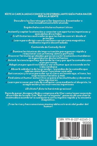 Ríete a carcajadas con esta desternillante guía para hacer reír a la gente Descubre los Secretos para Ser Ingenioso, Encantador e Interminablemente Entretenido Engánchales con titulares humorísticos ¿¿Instantly captar la atención y conectar con aperturas ingeniosas y anécdotas divertidas ¿¿Craft historias cautivadoras que les harán sonreír desde el principio ¿¿Learn para dirigir conversaciones con carisma magnético mediante ingenio desenfadado Contenido de Comedy Gold ¿¿ Domina las técnicas de improvisación para pensar rápido y reaccionar con un timing cómico perfecto ¿¿Discover fórmulas probadas para convertir momentos mundanos en espectáculos desternillantes ¿¿Unlock la ciencia que hay detrás de la risa y por qué la comedia une a las personas ¿¿Adopt una perspectiva lúdica y ver el humor que se esconde en la vida cotidiana ¿¿Absorb sabiduría de los grandes - leyendas de la comedia que sabían cómo hacer funcionar una sala ¿¿Get consejos y trucos para dar en el clavo en la entrega, el tono, las expresiones faciales y más ¿¿Find cómo el humor autocrítico se gana a las multitudes y desarma a los agresores ¿¿Learn para sacar partido de cualquier cosa mediante el despiste, la exageración y las ocurrencias ingeniosas ¿El chiste? ¡Esto te hará más gracioso! Deja de pasar desapercibido y empieza a brillar como la persona más divertida de la sala. Con "Haz reír a la gente", pasarás de una charla incómoda a asombrar a cualquiera con tu ingenio rápido y tu encanto magnético. ¡Trae la risa y haz conexiones memorables a través del poder del humor!