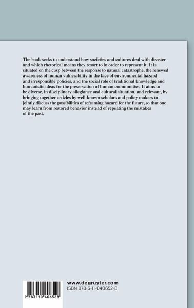 The book seeks to understand how societies and cultures deal with disaster and the rhetorical means they resort to in order to represent it. It is situated on the cusp between the response to natural catastrophe, the renewed awareness of human vulnerability in the face of environmental hazard and irresponsible policies and the social role of traditional knowledge and humanistic ideas for the preservation of human communities. It aims to be diverse, in disciplinary allegiance and cultural situation, and relevant, by bringing together articles by well-known scholars and policy makers to jointly discuss the possibilities of reframing hazard for the future, so that one may learn from restored behavior instead of repeating the mistakes of the past.