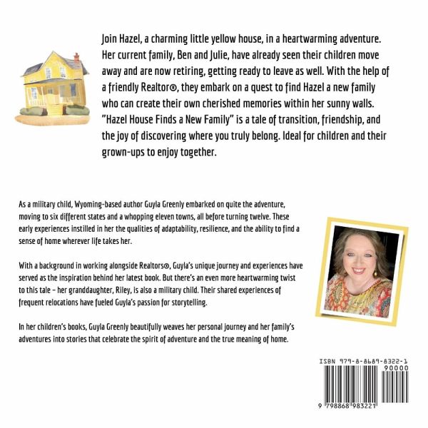 Join Hazel, a charming little yellow house, in a heartwarming adventure. Her current family, Ben and Julie, have already seen their children move away and are now retiring, getting ready to leave as well. With the help of a friendly realtor, they embark on a quest to find Hazel a new family who can create their own cherished memories within her sunny walls. "Hazel House Finds a New Family" is a tale of transition, friendship, and the joy of discovering where you truly belong. Ideal for children and their grown-ups to enjoy together.