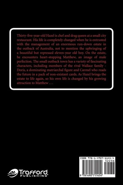 Thirty-five-year-old Hazel is chef and drag queen at a small city restaurant. His life is completely changed when he is entrusted with the management of an enormous run-down estate in the outback of Australia, not to mention the upbringing of a beautiful but repressed eleven-year-old boy. On the estate, he encounters heart-stopping Matthew, an image of male perfection. The small outback town has a variety of fascinating characters, including members of the rival Wallace family; Doris, a dominating matriarchal figure; and Carmel, who reads the future in a pack of nonexistent cards. As Hazel brings the estate to life again, so his own life is changed by his growing attraction to Matthew . . .