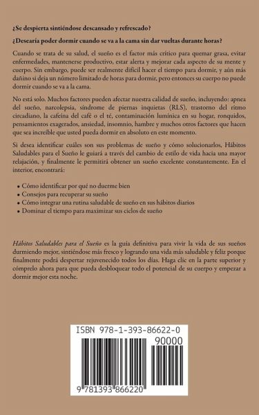 ¿Se despierta sintiéndose descansado y refrescado? ¿Desearía poder dormir cuando se va a la cama sin dar vueltas durante horas? Cuando se trata de su salud, el sueño es el factor más crítico para quemar grasa, evitar enfermedades, mantenerse productivo, estar alerta y mejorar cada aspecto de su mente y cuerpo. Sin embargo, puede ser realmente difícil hacer el tiempo para dormir, y aún más dañino si deja un número limitado de horas para dormir, pero entonces su cuerpo no puede dormir cuando se va a la cama. No está solo. Muchos factores pueden afectar nuestra calidad de sueño, incluyendo: apnea del sueño, narcolepsia, síndrome de piernas inquietas (RLS), trastorno del ritmo circadiano, la cafeína del café o el té, contaminación lumínica en su hogar, ronquidos, pensamientos exagerados, ansiedad, insomnio, hambre y muchos otros factores que hacen que sea increíble que usted pueda dormir en absoluto en este momento. Si desea identificar cuáles son sus problemas de sueño y cómo solucionarlos, Hábitos Saludables para el Sueño le guiará a través del cambio de estilo de vida hacia una mayor relajación, y finalmente le permitirá obtener un sueño excelente constantemente. En el interior, encontrará: Cómo identificar por qué no duerme bien Consejos para recuperar su sueño Cómo integrar una rutina saludable de sueño en sus hábitos diarios Dominar el tiempo para maximizar sus ciclos de sueño Hábitos Saludables para el Sueño es la guía definitiva para vivir la vida de sus sueños durmiendo mejor, sintiéndose más fresco y logrando una vida más saludable y feliz porque finalmente podrá despertar rejuvenecido todos los días. Haga clic en la parte superior y cómprelo ahora para que pueda desbloquear todo el potencial de su cuerpo y empezar a dormir mejor esta noche.