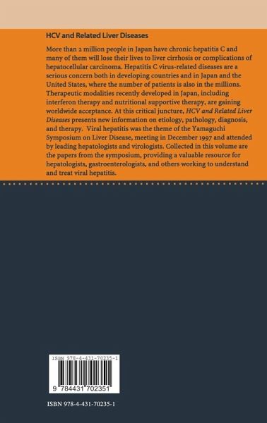 More than 2 million people in Japan have chronic hepatitis C and many of them will lose their lives to liver cirrhosis or complications of hepatocellular carcinoma. Hepatitis C virus-related diseases are a serious concern both in developing countries and in Japan and the United States, where the number of patients is also in the millions. Therapeutic modalities recently developed in Japan, including interferon therapy and nutritional supportive therapy, are gaining worldwide acceptance. At this critical juncture, HCV and Related Liver Diseases presents new information on etiology, pathology,…mehr