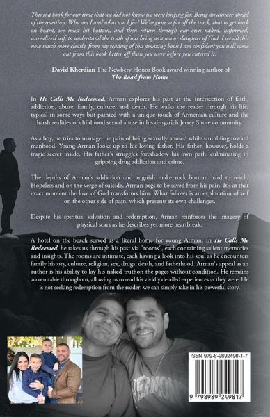 Sexual abuse. Heroin addiction. A childhood lost and a life nearly ended. He Calls Me Redeemed is a raw and gripping memoir of pain, addiction, and the redeeming power of faith. In He Calls Me Redeemed, Arman explores his past at the intersection of faith, addiction, abuse, family, culture, and death. He walks the reader through his life, typical in some ways but painted with a unique touch of Armenian culture and the harsh realities of sexual abuse in his drug-rich Jersey Shore community. As a boy, he tries to manage the pain of being sexually abused while stumbling toward manhood. Young Arman looks up to his loving father. His father, however, holds a tragic secret inside. His father's struggles foreshadow his own path, culminating in gripping drug addiction and crime. The depths of Arman's addiction and anguish make rock bottom hard to reach. Hopeless and on the verge of suicide, Arman begs to be saved from his pain. It's at that exact moment the love of God transforms him. What follows is an exploration of self on the other side of pain, which presents its own challenges. Despite his spiritual salvation and redemption, Arman reinforces the imagery of physical scars as he describes more heartbreak. Luckily for the reader, the final message is one of hope as the boy and son become a man and father, flawed and scarred but Redeemed. A hotel on the beach served as a literal home for young Arman. In He Calls Me Redeemed, he takes us through his past via "rooms," each containing salient memories and insights. The rooms are intimate, each having a look into his soul as he encounters family history, culture, religion, sex, drugs, death, and fatherhood. Arman's appeal as an author is his ability to lay his naked truth on the pages without condition. He remains accountable throughout, allowing us to read his vividly detailed experiences as they were. He is not seeking redemption from the reader; we can simply take in his powerful story. Walk through the rooms of Arman Kaymakcian's life in this vividly detailed, emotionally charged memoir. Witness the intersection of faith, family, and addiction as Arman stumbles toward manhood in the wake of childhood sexual trauma. He Calls Me Redeemed lays bare the naked truth-no holds barred. An unflinching portrayal of the darkest depths of human experience and the triumph of the human spirit. Scroll up and grab your copy today.