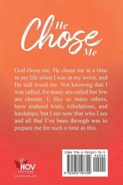 God chose me. He chose me at a time in my life when I was at my worst, and He still loved me. Not knowing that I was called, for many are called but few are chosen. I, like so many others, have endured trials, tribulations, and hardships, but I see now that who I am and all that I've been through was to prepare me for such a time as this.