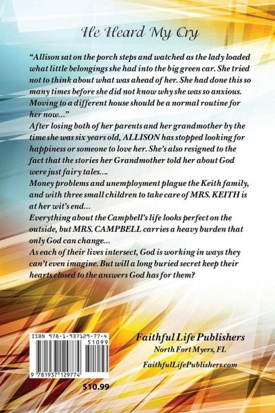 "Allison sat on the porch steps and watched as the lady loaded what little belongings she had into the big green car. She tried not to think about what was ahead of her. She had done this so many times before she did not know why she was so anxious. Moving to a different house should be a normal routine for her now..." After losing both of her parents and her grandmother by the time she was six years old, ALLISON has stopped looking for happiness or someone to love her. She's also resigned to the fact that the stories her Grandmother told her about God were just fairy tales.... Money problems and unemployment plague the Keith family, and with three small children to take care of MRS. KEITH is at her wit's end... Everything about the Campbell's life looks perfect on the outside, but MRS. CAMPBELL carries a heavy burden that only God can change... As each of their lives intersect, God is working in ways they can't even imagine. But will a long buried secret keep their hearts closed to the answers God has for them?