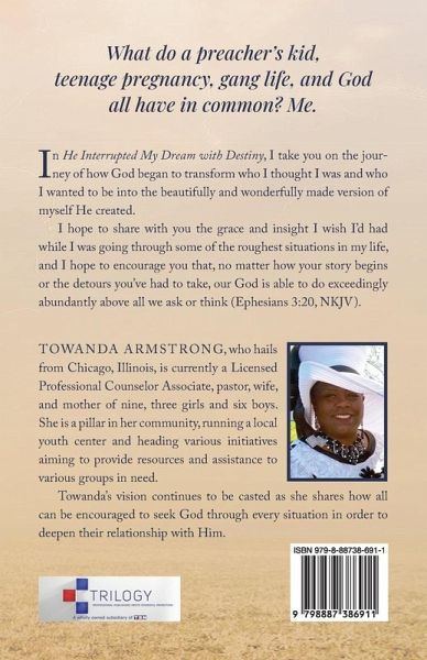 What do a preacher's kid, teenage pregnancy, gang life, and God all have in common? Me. ¿¿In He Interrupted My Dream with Destiny, I take you on the journey of how God began to transform who I thought I was and who I wanted to be into the beautifully and wonderfully made version of myself He created. I hope to share with you the grace and insight I wish I'd had while I was going through some of the roughest situations in my life, and I hope to encourage you that, no matter how your story begins or the detours you've had to take, our God is able to do exceedingly abundantly above all we ask or think (Ephesians 3:20, NKJV).