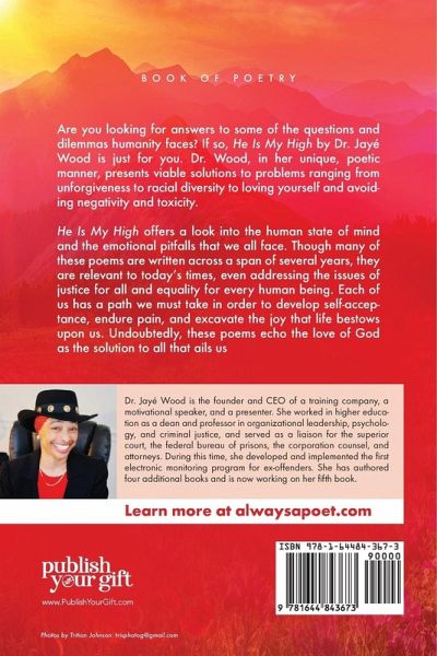 Are you looking for answers to some of the questions and dilemmas humanity faces? If so, He Is My High by Dr. Jayé Wood is just for you. Dr. Wood, in her unique, poetic manner, presents viable solutions to problems ranging from unforgiveness to racial diversity to loving yourself and avoiding negativity and toxicity. He Is My High offers a look into the human state of mind and the emotional pitfalls that we all face. Though many of these poems are written across a span of several years, they are relevant to today's times, even addressing the issues of justice for all and equality for every human being. Each of us has a path we must take in order to develop self-acceptance, endure pain, and excavate the joy that life bestows upon us. Undoubtedly, these poems echo the love of God as the solution to all that ails us.