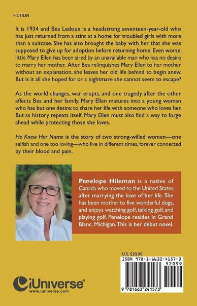 It is 1934 and Bea Ledoux is a headstrong seventeen-year-old who has just returned from a stint at a home for troubled girls with more than a suitcase. She has also brought the baby with her that she was supposed to give up for adoption before returning home. Even worse, little Mary Ellen has been sired by an unavailable man who has no desire to marry her mother. After Bea relinquishes Mary Ellen to her mother without an explanation, she leaves her old life behind to begin anew. But is it all she hoped for or a nightmare she cannot seem to escape? As the world changes, war erupts, and one tragedy after the other affects Bea and her family, Mary Ellen matures into a young woman who has but one desire: to share her life with someone who loves her. But as history repeats itself, Mary Ellen must also find a way to forge ahead while protecting those she loves. He Knew Her Name is the story of two strong-willed women-one selfish and one too loving-who live in different times, forever connected by their blood and pain.