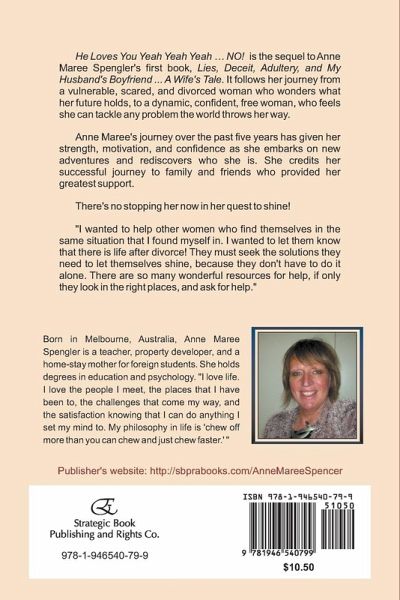 He Loves You Yeah Yeah Yeah … NO! is the sequel to Anne Maree Spengler's first book, Lies, Deceit, Adultery, and My Husband's Boyfriend ... A Wife's Tale. It follows her journey from a vulnerable, scared, and divorced woman who wonders what her future holds, to a dynamic, confident, free woman, who feels she can tackle any problem the world throws her way. Anne Maree's journey over the past five years has given her strength, motivation, and confidence as she embarks on new adventures and rediscovers who she is. She credits her successful journey to family and friends who provided her greatest support. There's no stopping her now in her quest to shine! "I wanted to help other women who find themselves in the same situation that I found myself in. I wanted to let them know that there is life after divorce! They must seek the solutions they need to let themselves shine, because they don't have to do it alone. There are so many wonderful resources for help, if only they look in the right places, and ask for help." Born in Melbourne, Australia, Anne Maree Spengler is a teacher, property developer, and a home-stay mother for foreign students. She holds degrees in education and psychology. "I love life. I love the people I meet, the places that I have been to, the challenges that come my way, and the satisfaction knowing that I can do anything I set my mind to. My philosophy in life is 'chew off more than you can chew and just chew faster.' "