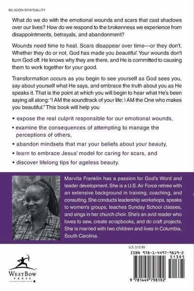 What do we do with the emotional wounds and scars that cast shadows over our lives? How do we respond to the brokenness we experience from disappointments, betrayals, and abandonment? Wounds need time to heal. Scars disappear over time—or they don’t. Whether they do or not, God has made you beautiful. Your wounds don’t turn God off. He knows why they are there, and He is committed to causing them to work together for your good. Transformation occurs as you begin to see yourself as God sees you, say about yourself what He says, and embrace the truth about you as He speaks it. That is the point at which you will begin to hear what He’s been saying all along: "I am the soundtrack of your life; I AM the One who makes you beautiful." This book will help you • expose the real culprit responsible for our emotional wounds, • examine the consequences of attempting to manage the perceptions of others, • abandon mindsets that mar your beliefs about your beauty, • learn to embrace Jesus’ model for caring for scars, and • discover lifelong tips for ageless beauty.