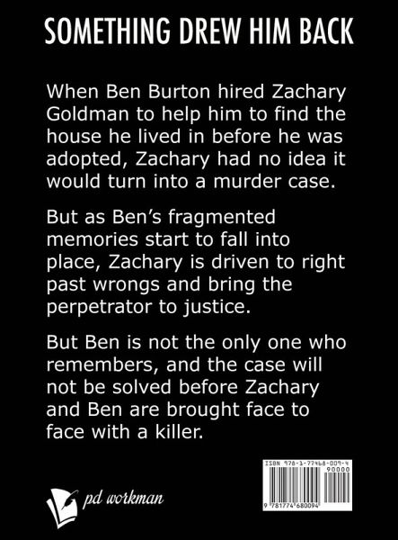 From USA Today Bestselling Author, P.D. Workman! Something drew him back When Ben Burton hired Zachary Goldman to help him to find the house he lived in before he was adopted, Zachary had no idea it would turn into a murder case. But as Ben's fragmented memories start to fall into place, Zachary is driven to right past wrongs and bring the perpetrator to justice. But Ben is not the only one who remembers what happened. ¿¿¿¿¿¿¿¿¿¿ Once again P.D. Workman delivers a powerhouse of a novel! Zachary's new client wants to find his childhood home. Once they start digging, they find more than expected. This work is brilliantly crafted, with a tight plot and very well developed characters. I wish she could write as fast as I can read! I enjoyed this book and am looking forward to the next one. Zachary Goldman, Private Investigator, is flawed with a capital F. Shattered by the tragedies of his own life, he will somehow still manage to pick himself up and dig just a little bit deeper than anyone else to find the vital clues. Maybe being broken makes it easier for others who have faced tragedy to trust him. Walk with Zachary as he solves cases that will stretch his abilities to the limit. Even with his own life in shambles, Zachary Goldman is still the one you want on the case. Investigate this P.I. mystery now! Large print edition This edition has been formatted with Verdana 18 pt, 1.5 line spacing, and double-spaced paragraphs in accordance with the recommendations of the American Council for the Blind.