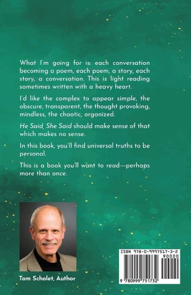 He Said, She Said: Conversations of Love, Life, Loss, andHope is a collection of poems and stories about important stuff... stuff like princesses, llamas, frogs, talking dogs, time, fast turtles, heroes, unicorns, temptation, beauty, love, gurus, water walking, and more.