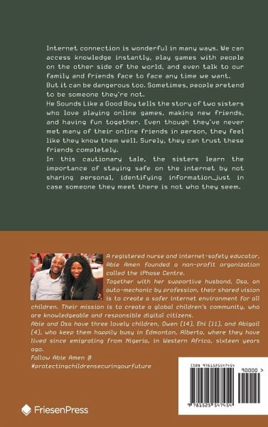 Internet connection is wonderful in many ways. We can access knowledge instantly, play games with people on the other side of the world, and even talk to our family and friends face to face any time we want. But it can be dangerous too. Sometimes, people pretend to be someone they're not. He Sounds Like a Good Boy tells the story of two sisters who love playing online games, making new friends, and having fun together. Even though they've never met many of their online friends in person, they feel like they know them well. Surely, they can trust these friends completely. In this cautionary tale, the sisters learn the importance of staying safe on the internet by not sharing personal, identifying information-just in case someone they meet there is not who they seem.