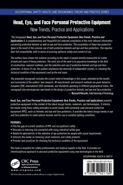 "The monograph Head, Eye, and Face Personal Protective Equipment - New Trends, Practice and Applications is a complementary and thoughtful but selected compilation of the most relevant information concerning protective helmets as well as eye and face protection. The compilation of these two protection types is the result of the common use of both protective helmets and eye and face protectors. This requires their full compatibility, both in terms of ensuring optimum safety and comfort of use.
