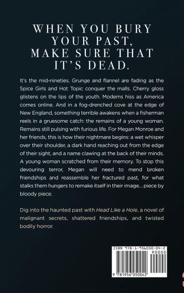 When you bury your past, make sure that it's dead. It's the mid-nineties. Grunge and flannel are fading as the Spice Girls and Hot Topic conquer the malls. Cherry gloss glistens on the lips of the youth. Modems hiss as America comes online. And in a fog-drenched cove at the edge of New England, something terrible awakens when a fisherman reels in a gruesome catch: the remains of a young woman. Remains still pulsing with furious life. For Megan Monroe and her friends, this is how their nightmare begins: a wet whisper over their shoulder, a dark hand reaching out from the edge of their sight, and a name clawing at the back of their minds. A young woman scratched from their memory. To stop this devouring terror, Megan will need to mend broken friendships and reassemble her fractured past, for what stalks them hungers to remake itself in their image... piece by bloody piece. Dig into the haunted past with Head Like a Hole, a novel of malignant secrets, shattered friendships, and twisted bodily horror.