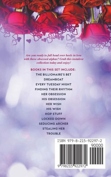 Are you ready to fall head over heels in love with these obsessed alphas? Grab this instalove collection today and enjoy! Books in this set include: The Billionaire's Bet Dreamboat Every Tuesday Night Finding Their Rhythm Her Obsession His Obsession Her Wish His Wish Hop Stuff Locked Down Seducing Archer Stealing Her Trouble