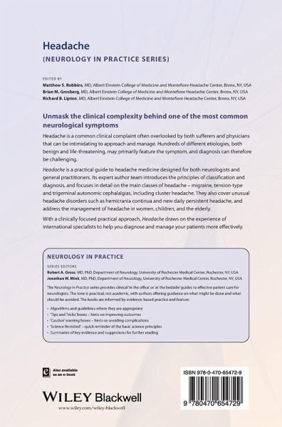 This book is a practical guide to headache medicine designed forboth neurologists and general practitioners. Its expert author teamintroduces the principles of classification and diagnosis, andfocuses in detail on the main classes of headache migraine,tension-type and trigeminal autonomic cephalgias, including clusterheadache. The book's clinically focused practical approachcovers unusual headache disorders, such as hemicrania continua andnew daily persistent headache, and addresses the management ofheadache in women, children and the elderly.