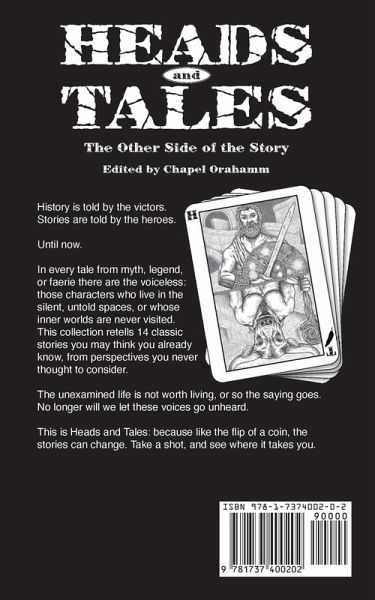 History is told by the victors. Stories are told by the heroes. Until now. In every tale from myth, legend, or faerie there are the voiceless: those characters who live in the silent, untold spaces, or whose inner worlds are never visited. This collection retells 14 classic stories you may think you already know, from perspectives you never thought to consider. The unexamined life is not worth living, or so the saying goes. No longer will we let those voices go unheard. This is Heads and Tales: because like the flip of a coin, the stories can change. Take a shot, and see where it takes you.
