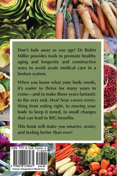 Don't fade away as you age! Dr. Robin Miller provides tools to promote healthy aging and longevity and constructive ways to avoid acute medical care in a broken system. When you know what your body needs, it's easier to thrive for many years to come-and to make those years fantastic to the very end. ¿Heal Now covers everything from eating right to moving your body to keep it toned, to small changes that can lead to BIG benefits. This book will make you smarter, sexier, and feeling better than ever!