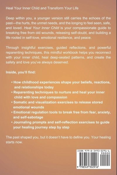 The secret to healing emotional wounds from your past is reconnecting with your inner child. Discover how to nurture this essential relationship... If you've experienced persistent anxiety, self-doubt, struggles with intimacy, or harmful emotional patterns you can't break, you've probably wondered if your childhood experiences might be the cause. Inside this comprehensive workbook, you'll discover:Exactly who your inner child is and why connecting with them is essential... plus, how childhood experiences shape your adult life and emotions. Powerful yet gentle exercises and reflective journaling prompts to uncover and release deeply held emotional wounds. How to silence your inner critic by transforming harsh self-talk into compassionate self-support-boosting your confidence and emotional well-being. Proven techniques for cultivating genuine self-love so you can break toxic patterns and embrace your true worth. How to set empowering boundaries clearly and kindly, allowing you to thrive in your relationships and protect your emotional health. Daily rituals and mindfulness practices to help you create lasting inner peace and a joyful, balanced life. A wealth of practical exercises, guided visualizations, and affirmations that will lead you step-by-step toward emotional freedom and transformation. And much more. If you've tried countless ways to move beyond your emotional wounds without success, you might doubt whether healing your inner child could really make a difference. But your inner child holds the answers to emotional freedom-answers that traditional approaches might miss. Until you reconnect with this essential part of yourself, lasting healing and peace will remain just out of reach. This heartfelt and empowering guide to inner child healing provides all the tools and support you need. You'll be in control, navigating confidently toward a life defined by peace, self-love, and authentic happiness.