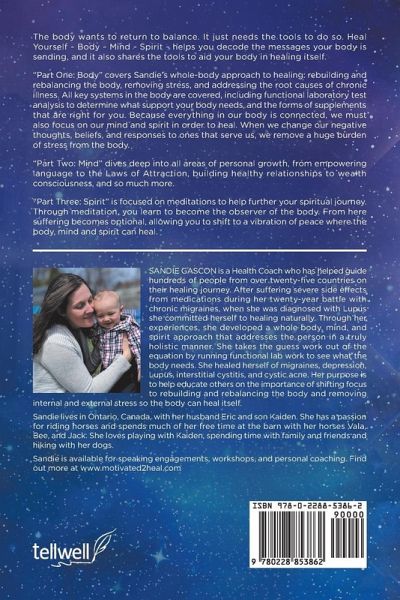The body wants to return to balance. It just needs the tools to do so. Heal Yourself ~ Mind ~ Body ~ Spirit ~ helps you discover the messages your body is sending, and it also shares the tools to aid your body in healing itself. "Part One: Body" covers Sandie's whole-body approach to healing: rebuilding and rebalancing the body, removing stress, and addressing the root causes of chronic illness. All key systems in the body are covered, including functional laboratory test analysis to determine what support your body needs, and the forms of supplements that are right for you. Because everything in our body is connected, we must also focus on our mind and spirit in order to heal. When we change our negative thoughts, beliefs, and responses to ones that serve us, we remove a huge burden of stress from the body. "Part Two: Mind" dives deep into all areas of personal growth, from empowering language to the Laws of Attraction, building healthy relationships to wealth consciousness, and so much more. "Part Three: Spirit" is focused on meditations to help further your spiritual journey. Through meditation, you learn to become the observer of the body. From here suffering becomes optional, allowing you to shift to a vibration of peace where the body, mind and spirit can heal.