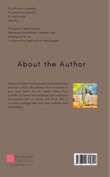 ""It's difficult to breathe It's painful to pretend It's sad to live Like this.. This book is about anxiety depression, heartbreak, freedom, loss, longing and so on... I've poured my heart out on these pages.""