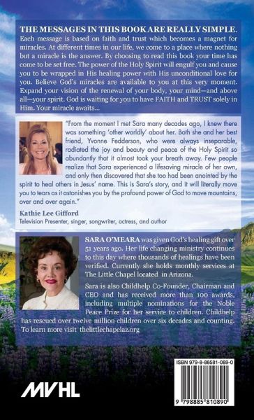 Sara O'Meara was born Sara Buckner in Knoxville, Tennessee and was educated at Briarcliff Junior College, New York; Endicott College, Massachusetts; The Sorbonne, France; and Pasadena Playhouse, California. Sara lives in Paradise Valley, Arizona. She has a son, John Hopkins. Her other son, Chuck, passed away in 1988 in an auto accident. Sara also has a daughter, Taryn, and three grandchildren. Sara lost her husband Colonel Robert (Bob) Sigholtz in 2005. Bob was a highly decorated Colonel who fought in three wars-World War II, the Korean War, and the Vietnam War. He was also the Athletic Director of Georgetown University.As Childhelp Co-Founder, Chairman, and CEO Sara O'Meara is actively involved in the development and oversight of the organization. Sara serves as the organization's key spokesperson and is primarily responsible for fund development and overall oversight of the organization's business. She has served on the boards of international organizations concerned with child welfare. As a board member for the International Union for Child Welfare, she was the sole United States representative among First Ladies and ministers of numerous nations. She also served as chairman of the International Alliance of Child Abuse and Neglect.Sara has received more than 100 awards for her service to children, including the Arizona Foundation for Women's Sandra Day O'Connor Award and Most Dynamic Woman of the Year award from Clarins USA. Others include an award for international collaboration to prevent child abuse presented by Queen Elizabeth II of the United Kingdom; a U.S. Department of Justice award presented by President Ronald Reagan; the Kiwanis World Service Medal, the Global Women's Summit Award, Family Circle magazine's Women of the Year, and an award from the National Federation of Business and Professional Women's Clubs. She has been the recipient of several awards in Washington, D.C., including the Congressional Angels in Adoption Award, National Caring Award, the Hubert Humphrey Memorial Award at the Touchdown Club, and the Lifetime Achievement Award at the National Charity Awards Dinner. Sara, along with Co-Founder Yvonne Fedderson, have been nominated several times for the Nobel Peace Prize. Endorsements for the prestigious nomination include letters from U.S. Supreme Court Justice Sandra Day O'Connor and former First Lady Barbara Bush, along with numerous politicians, educators, and corporate executives. A papal recognition and recent Humanitarian Award by the Interfaith Movement demonstrates the intersection of service and faith. Most recent accolades include a Golden Rule Humanitarian Award by the Interfaith Movement, the Foundation for Global Sports Development Humanitarian Award, and the Stanford University Hall of Fame Award.Sara O'Meara was given God's healing gift over fifty-one years ago. Her life-changing ministry continues to this day where thousands of healings have been verified. Currently she holds monthly services at The Little Chapter located in Paradise Valley, AZ.Sara is also Childhelp Co-Founder, Chairman and CEO and has received more than 100 awards, including multiple nominations for the Noble Peace Prize for her service to children. Childhelp has rescued over twelve million children over six decades and counting.Sara's prayer is that the holder of this book will be blessed upon turning that first page. To learn more, visit thelittlechapelaz.org.