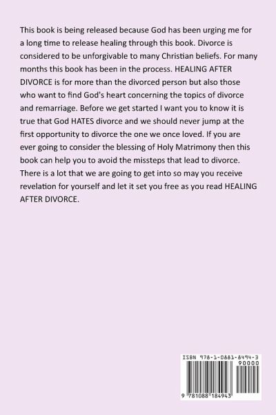 This book is being released because God has been urging me for a long time to release healing through this book. Divorce is considered to be unforgivable to many Christian beliefs. For many months this book has been in the process. HEALING AFTER DIVORCE is for more than the divorced person but also those who want to find God's heart concerning the topics of divorce and remarriage. Before we get started I want you to know it is true that God HATES divorce and we should never jump at the first opportunity to divorce the one we once loved. If you are ever going to consider the blessing of Holy Matrimony then this book can help you to avoid the missteps that lead to divorce. There is a lot that we are going to get into so may you receive revelation for yourself and let it set you free as you read HEALING AFTER DIVORCE.