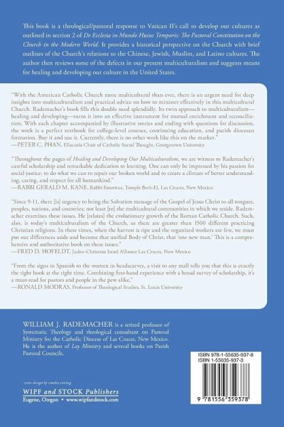 This book is a theological/pastoral response to Vatican II's call to develop our cultures as outlined in section 2 of De Ecclesia in Mundo Huius Temporis: The Pastoral Constitution on the Church in the Modern World. It provides a historical perspective on the Church with brief outlines of the Church's relations to the Chinese, Jewish, Muslim, and Latino cultures. The author then reviews some of the defects in our present multiculturalism and suggests means for healing and developing our culture in the United States.