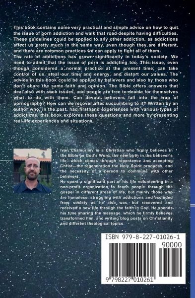 This book contains some very practical and simple advice on how to quit the issue of porn addiction and walk that road despite having difficulties. These guidelines could be applied to any other addiction, as addictions affect us pretty much in the same way, even though they are different, and there are common practices we can apply to fight all of them. The rate of addictions has grown significantly in today's society. We need to admit that the issue of porn is addicting too. This issue, even though considered a normal practice at the present time, can take control of us, steal our time and energy, and distort our values. The advice in this book could be applied by believers and also by those who don't share the same faith and opinion. The Bible offers answers that deal also with such issues, and people are free to decide for themselves what to do with them. Can devout believers fall into the trap of pornography? How can we recover after succumbing to it? Written by an author who, in the past, had firsthand experiences with various types of addictions, this book explores these questions and more by presenting real-life experiences and situations.