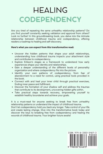 Embark on a Transformative Journey with a Healing Guide to Breaking Free from Codependency and Rediscovering Joy! Uncover the Roots of Codependency: Dive deep into the heart of codependency with Elena Miro's compassionate insights. Understand how childhood trauma shapes codependent patterns, and discover practical tools to identify and break free from toxic relationships. Miro's approach shines a light on the transformative power of healing from within. Heal Your Inner Child and Overcome Anxiety: Unlock the secrets to healing your inner child and liberate yourself from the grip of anxiety. "Healing Codependency" provides actionable steps to address the lingering effects of childhood trauma, offering a path to resilience and self-discovery. Say goodbye to the shadows of the past and embrace a future free from the weight of anxiety. Establish Healthy Boundaries and Break the Cycle: Learn the art of setting boundaries and reclaiming your autonomy. Miro's guide empowers you to navigate relationships with newfound strength, breaking the cycle of codependency. Say farewell to guilt and shame as you build a foundation of self-worth, creating relationships that honor your needs and aspirations. Experience True Healing and Rediscover Your Best Life: Elena Miro's expertise guides you through a transformative journey of healing, addressing the core elements of codependency with empathy and wisdom. This book is not just about overcoming challenges; it's a roadmap to rediscovering your best life. Release the weight of guilt and shame, and embrace a future filled with authenticity, joy, and purpose. "Healing Codependency" is more than a self-help book; it's a beacon of hope for those ready to break free from the chains of codependency and embark on a journey of self-discovery. If you're yearning for a life free from toxic relationships, anxiety, and the burdens of the past, let this book be your guide. Start your transformative journey today by getting this book NOW!