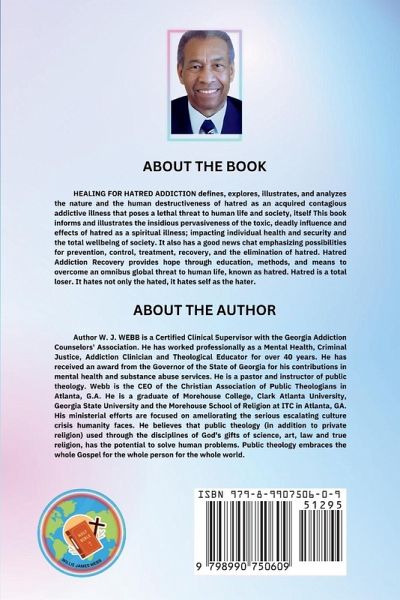Healing For Hatred Addiction defines, explores, illustrates and analyzes the nature and the human destructiveness of hatred as an acquired contagious addictive illness that poses a lethal threat to human life and society, itself. This book informs and illustrates the insidious pervasiveness of the toxic, deadly influence and effects of hatred as a spiritual illness; impacting individual health and security and the total wellbeing of society. It also has good news that emphasizes possibilities for prevention, control, treatment, recovery and the elimination of hatred. Hatred Addiction Recovery provides hope through education, methods and means to overcome an omnibus global threat to human life, known as hatred. Hatred is a total loser. It hates not only the hated, it hates self as the hater.