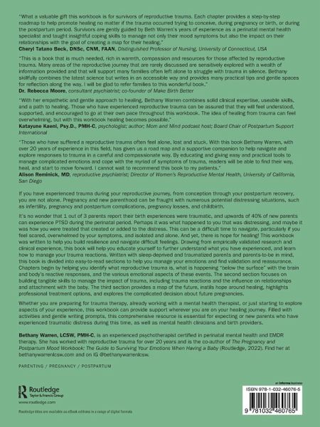 "What a valuable gift this workbook is for survivors of reproductive trauma. Each chapter provides a step-by-step roadmap to help promote healing no matter if the trauma occurred trying to conceive, during pregnancy or birth, or during the postpartum period. Survivors are gently guided by Beth Warren's years of experience as a perinatal mental health specialist and taught insightful coping skills to manage not only their mood symptoms but also the impact on their relationships with the goal of creating a map for their healing."